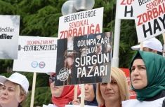 Genel Başkan Ali Yalçın şöyle devam etti: “Seçim meydanlarında sahte tebessümler, sinsi ve yaldızlı sözlerle oy toplayanların seçim sonrası cilası dökülmüş, makyajı sökülmüş ve gerçek yüzleri görünmüştür. Meydanlarda adaletten, insan haklarından, demokrasi ve özgürlüklerden bahsedenlerin taktıkları yaldızlı maske –şimdi anlıyoruz ki bunların reklam yüzleriymiş. Belediyeleri devraldıktan sonra gösterdikleri ise gerçek yüzleri. Nitekim; en fazla baskı uygulayan belediyelerin bağlı olduğu CHP’nin genel başkanı Sayın Kılıçdaroğlu’na bir grup toplantısında sarf ettiği şu sözleri hatırlamak istiyoruz. Aynen şöyle diyor Sayın Kılıçdaroğlu: ‘480 işçiyi hangi gerekçeyle işe başlatmıyorsunuz? Sendikalara da sesleniyorum? Neden bu işçilerin hakkına sahip çıkmıyorsunuz? 480 kişi, 480 hane! Bunlar nasıl geçinecekler?’ Evet böyle diyor Sayın Kılıcdaroğlu! Biz de şimdi aynı şekilde kendisine sesleniyoruz: Sayın Kılıçdaroğlu! CHP’li belediyelerin işten attığı işçiler nasıl geçinecekler? Sendikal haklarına saldırılan, baskı altına alınan çalışanlar için CHP’li belediyelere, yandaş sendikalarınıza da bu çağrıyı yapacak mısınız? İşten çıkarılan, sürgün edilen, şantaj, tehdit ve mobbingle istifaya zorlanan, açlığa mahkum edilen, sendikal haklarına saldırılan belediye çalışanlarını da aynı şekilde savunacak mısınız? Partinize bağlı belediye başkanlarına ‘adil olun, zulme izin vermeyin, haddinizi bilin’ diyecek misiniz? Baskılara uğrayan belediye emekçilerine de ‘Siz dik durun, direnin, biz kapı gibi yanınızdayız’ diyecek misiniz? Buradan seçim meydanlarında tatlı tatlı konuşup, kazandıkları belediyelerde emekç iye zehir içirenlere samimiyet ve tutarlılık çağrısı yapıyoruz. Seçim sürecinde çalışanlara baskı yapılmayacağına dair verdikleri sözleri tutmaya, tutarlı ve samimi olmaya çağırıyoruz. Çünkü tutarlılık ve samimiyet erdeminden yoksun olanlar ancak riyakâr ve sahtekarlardı! Sizler üç maymunları oynasanız da biz mücadelemizle tarihe kayıt düşüyor, maskeleri yırtıyor, kirli yüzleri ortaya seriyoruz.”
