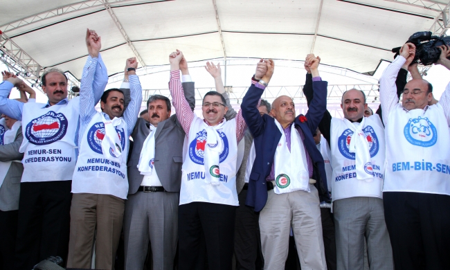 Memur-Sen ve Hak-İş tarafından düzenlenen ortak 1 Mayıs kutlaması, Ankara Tandoğan Meydanı'nda, Çalışma ve Sosyal Güvenlik Bakanı Faruk Çelik'in de katılımıyla yapıldı. On binlerce kişinin katıldığı mitingde, katılımcıların coşkusu dikkat çekerken, işçi ve memurların talepleri hep bir ağızdan haykırıldı.
