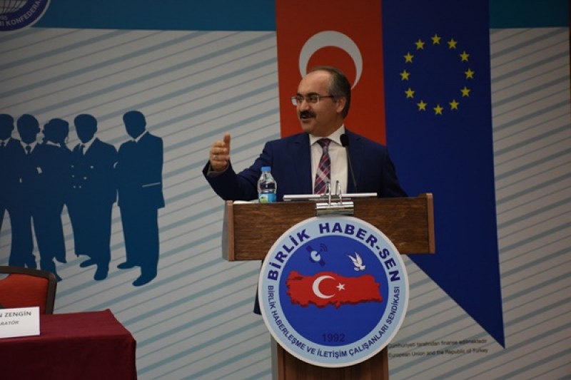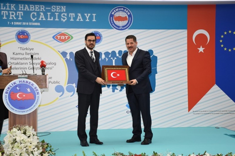 Birlik Haber-Sen olarak yürüttüğümüz Avrupa Birliği Projesi hakkında bilgi veren Genel Başkanımız Ömer Budak, çalıştayda “TRT Genel Müdürlüğü personel politikaları ve istihdam şekilleri; TRT Genel Müdürlüğü çalışanlarının ücret politikaları; TRT Genel Müdürlüğü çalışanlarının iş verimliliği ve motivasyonunu etkileyen sorunlar ve çözüm önerileri; TRT Genel Müdürlüğü yöneticileri ile çalışanların sosyal diyalog kapasitesinin geliştirilmesi” konularının ele alınacağını belirtti.