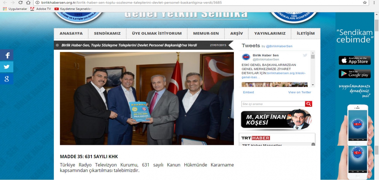 konusu başta 2013 yılında yapılan toplu sözleşmede, 2014 yılında gerçekleştirilen KPDK Toplantılarında, 2015 yılı 3. Dönem Toplu Sözleşmesinde, 2016 yılında gerçekleştirilen KPDK toplantılarında, Başbakan Yardımcısı Numan Kurtulmuş’a ilettiğimiz talepler arasında ve son olarak TRT Yönetim Kurulu ile gerçekleştirdiğimiz 2016 yılı 2. Dönem Kurum İdari Kurul Toplantısında dile getirdiğimiz bu talebimiz; TRT Genel Müdürü ve Yönetim Kurulunun gayretli çalışmaları ile  06.01.2017' de yayınlanan KHK ile kabul edilmiştir.